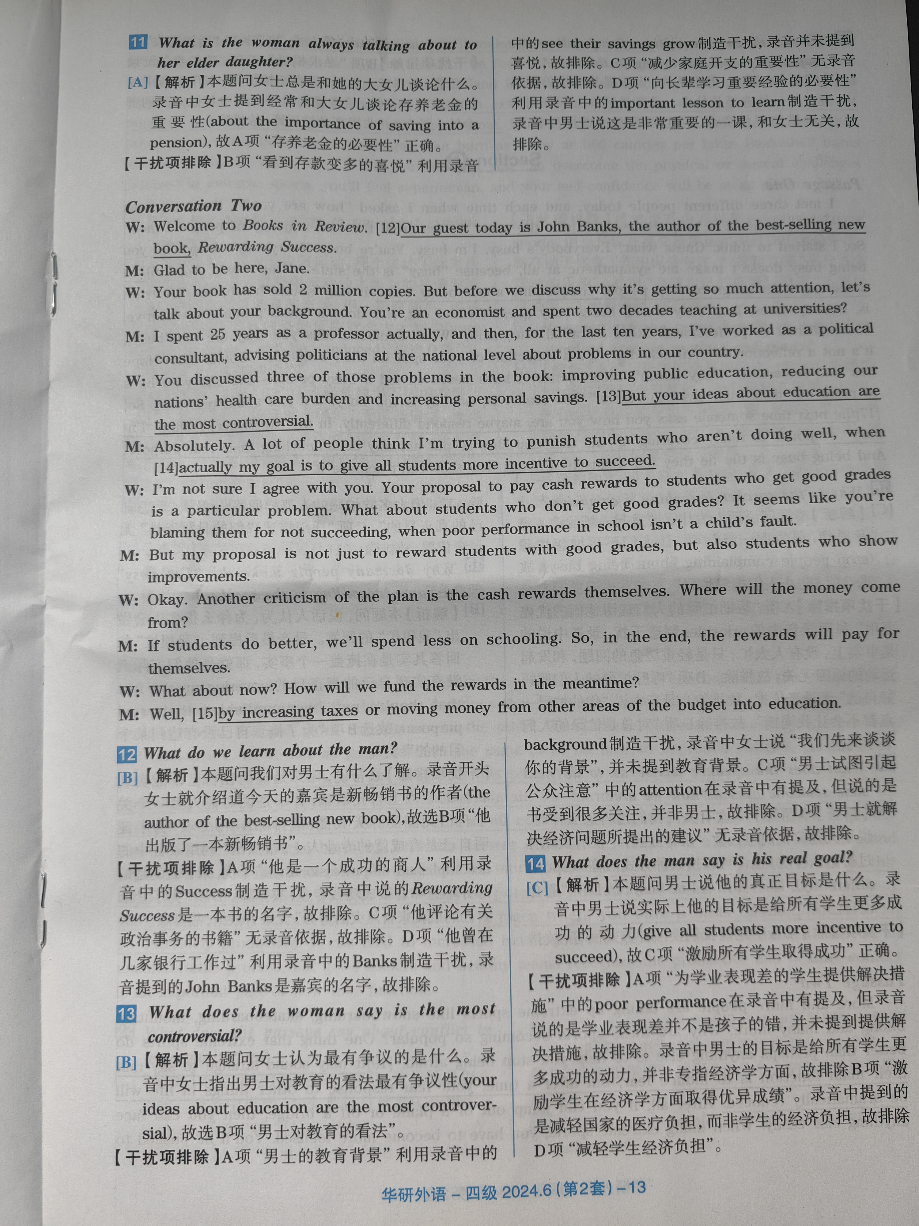 CET 4 2024年6月 第二套 答案及解析