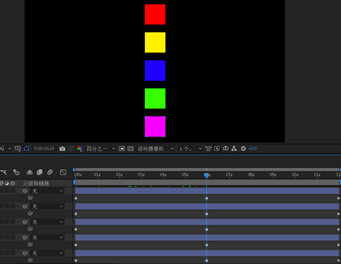 Ctrl+D四次,复制四个图层,再改变下各图层对象的颜色,这样五个图层就整齐划一地做匀速运动了。