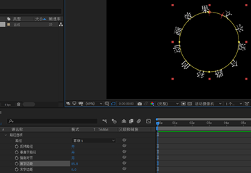 4.展开文字层“变换”选项,使用“锚点”工具,将中心点移动至几何中心。