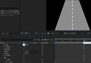 3.分别移动时间标尺至首、尾,添加“偏移”关键帧的值为:0、300,完成蚂蚁线效果制作。