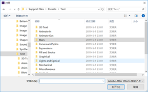 单击菜单“动画-将动画预设应用于”,打开AE CC文字动画预设对话框。