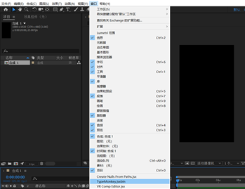 3.单击“窗口”菜单下的TypeMonkey.jsxbin项,打开第三方插件TM。