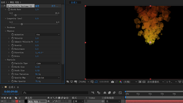 以下,利用AECC“模拟-CC Particle Systems Ⅱ”,制作另类火焰动画效果。