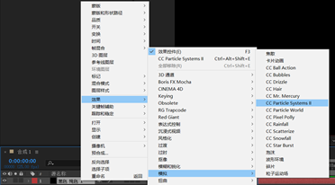 1.新建合成,再新建一个纯色图层,右击图层,在弹出的下拉菜单中,单击“效果-模拟-CC Particle Systems Ⅱ”。