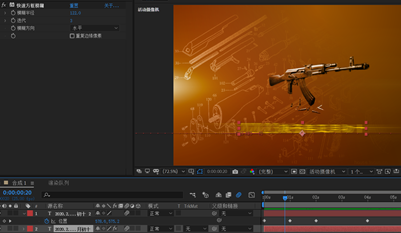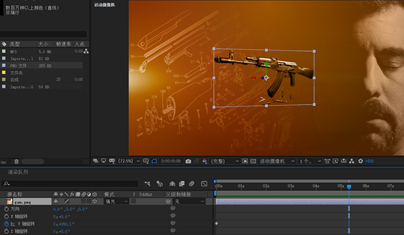 5.导入一张PNG格式枪的图片,将图层转换为三维,按R键展开“旋转”属性,