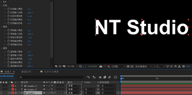 6.添加一行标题文字,按P键展开“位置”属性,做水平方向快进、快出、多段运动动画。