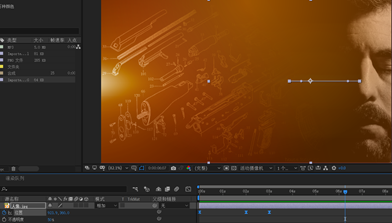 4.导入一张灰度的人像图片,按P键展开“位置”属性,做水平方向的运动动画。
