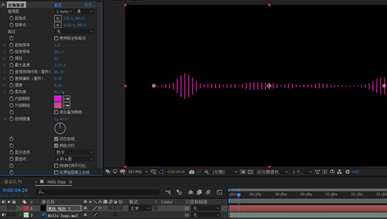 7.最后在图层上添加一个主题音频文件,按L键两次,展开音频波形并调整好相应的位置,完成最终的效果制作。
