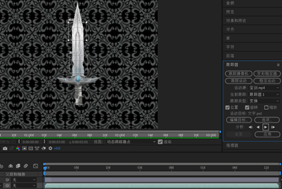 按A键展开“锚点”属性,将文字移动至剑柄的下方,完成最终的效果制作。