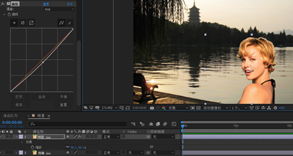 4.最后添加“颜色校正-曲线”特效,使上下图层的融合更趋自然。