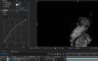 以下,利用色调、曲线特效和轨道遮罩(TrkMat),来制作火焰抠像效果。