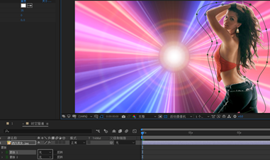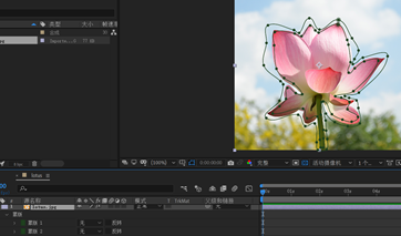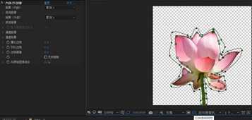 3.添加“抠像-内部/外部键”特效,用“钢笔工具”调整路径上的节点,完成荷花的精确抠像。