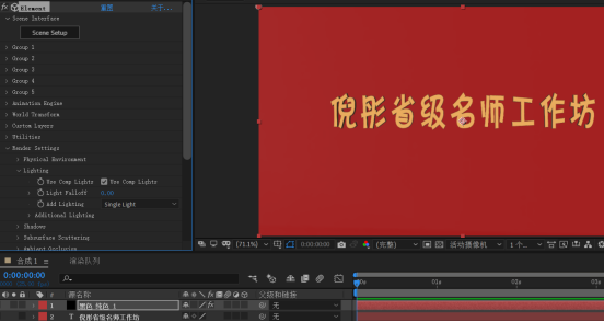 7.为进一步增强文字的质感,可在“效果控件”面板使用“Lighting”选项,增加光照效果。