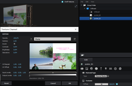 4.在“billboard”项下选中“poster_01-MaterialType-Textures”,进行纹理贴图。