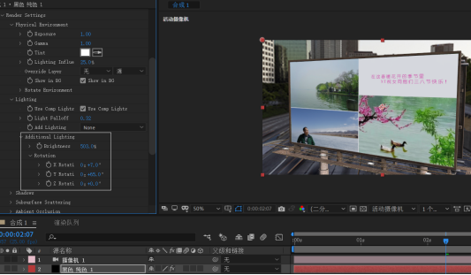 7.返回AE CC ,在纯色图层的“效果控件”面板“Element”项,添加光照效果,从而使广告牌变亮。