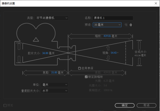 单击“效果控件”面板上的“创建摄像机”按钮,得到一个新的图层。
