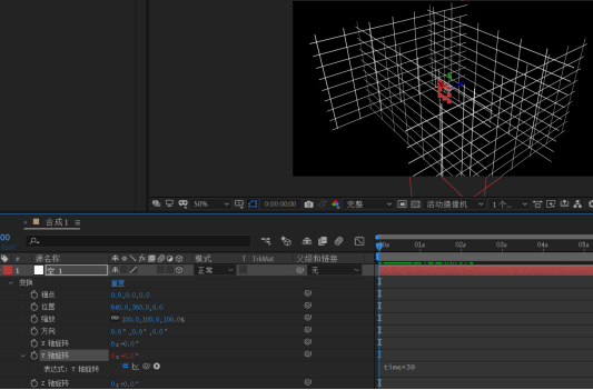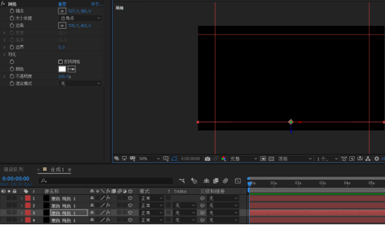 将四个网格图层的“父级和链接”设置为“空对象”图层。