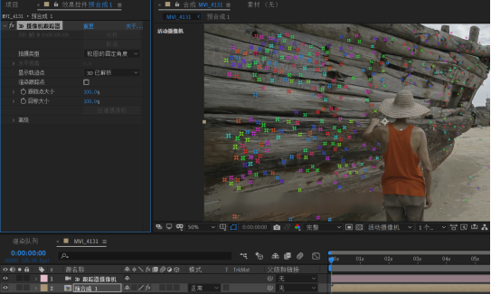 再单击“跟踪器”面板上的“跟踪摄像机”按钮,经过一段时间的分析,得到如图所示的结果。