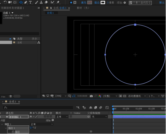 1.在AE CC中新建合成,选定椭圆工具,有描边、无填充,选中“贝塞尔曲线路径”项。