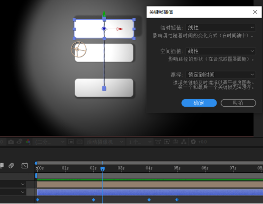 选定最上层上的所有关键帧,右击,在弹出的下拉式菜单中单击“关键帧插值-空间插值-线性”,做直上直下的效果。
