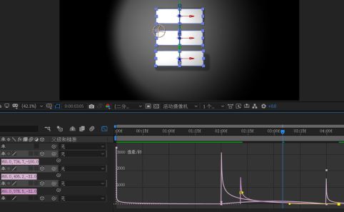 4.中间和最下方的圆角矩形所在的图层也做一段运动动画,运动的终点分别是最上层和中间层起始的位置,