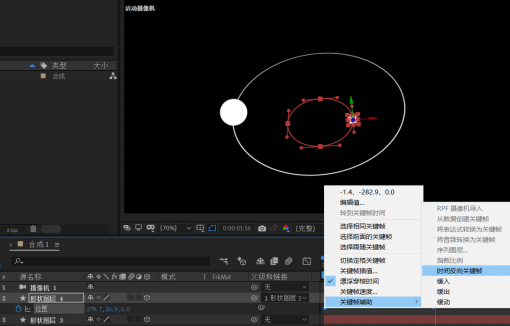 在弹出的下拉式菜单中选中“关键帧辅助-时间反向关键帧”,从而使大小球体的旋转方向相反。
