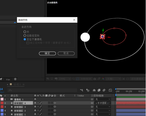 7.选中小球轨道所在的图层,按P键展开“位置”属性,单击其前的码表,在Z轴方向做关键帧动画,完成效果制作。
