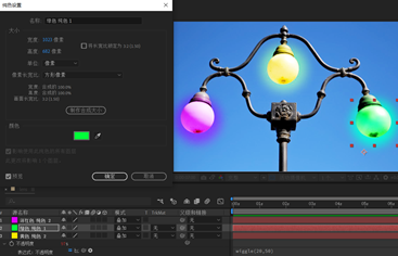 Ctrl+Shift+Y调出“纯色设置”对话框,更改下颜色,从而完成另外两盏闪烁的彩灯制作。