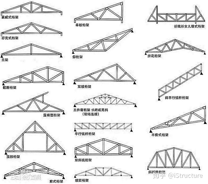 今天从桁架的历史发展说起,介绍三角桁架、梁桁架、空腹桁架、空间桁架等形式,以及相应的经典案例。