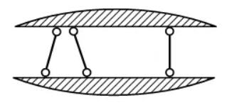 规律3.两个刚片用三根链杆相连,且三根链杆不交于一点,则组成无多余约束的几何不变体系。(两刚片规律最常见的模型就是简支梁)