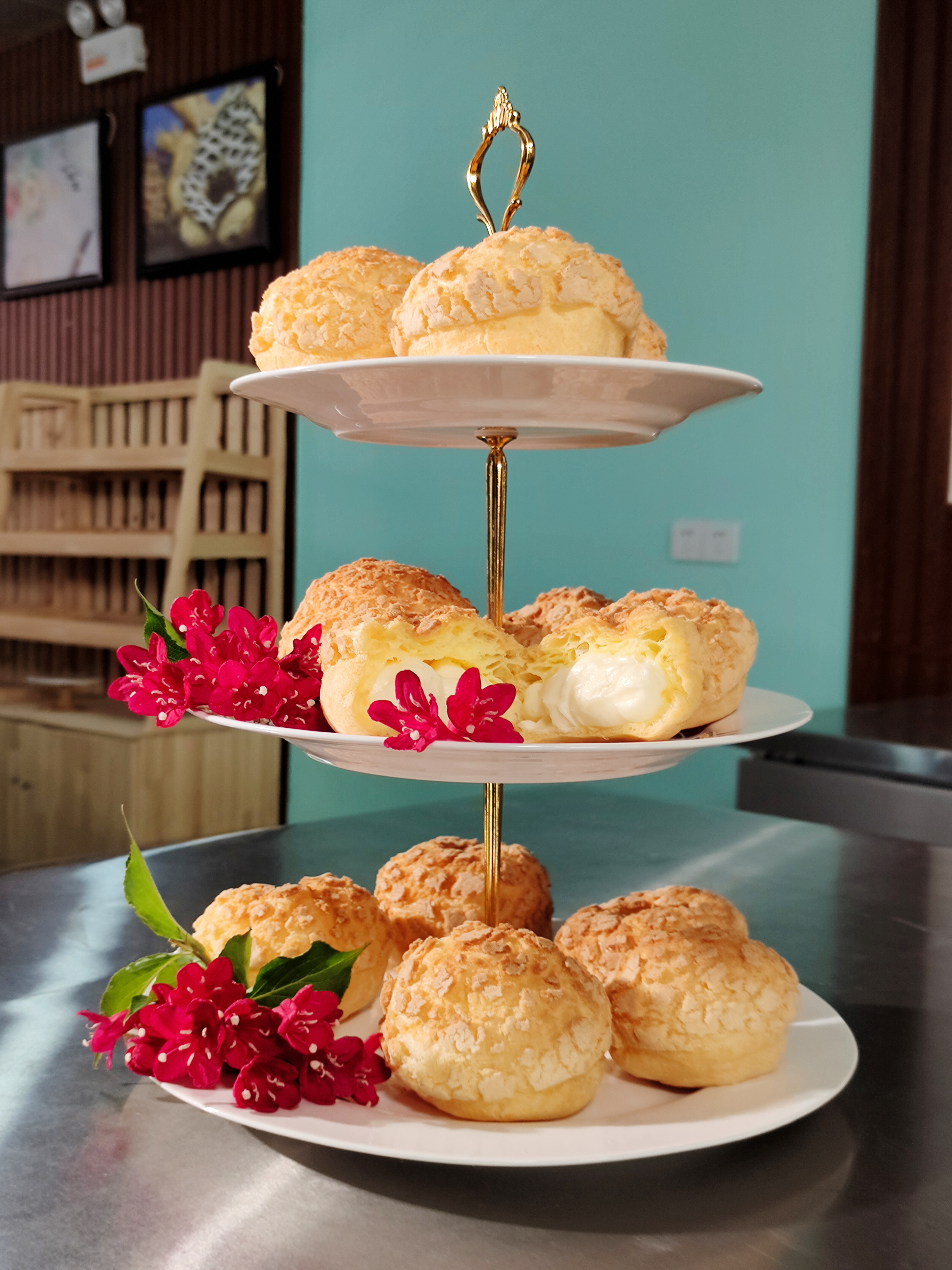 出炉后的泡芙冷却后,挤入科士达奶油馅等即为成品