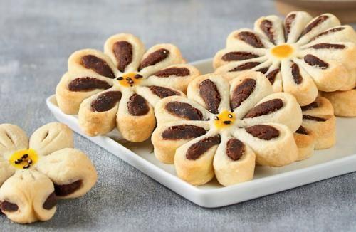 步骤二:拧出花瓣形状、漏出枣泥馅