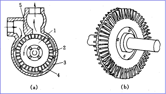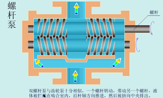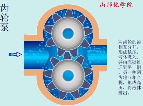 ② 原理:旋涡泵最初出现于1920年,曾有人作以下假说。叶轮和引水道充满了液体,叶轮转动,引水道中液体也在转动,在每一液体质点上作用着离心力,因为引水道中液体的圆周速度小于叶轮内液体周围速度,(如同筷子在杯中搅水,远离筷子的水转的较慢),故在叶轮内液体所受的离心力较引水道液体所受离心力大,由于离心力的大小不同,引起液体做圆环形运动(称为纵向旋涡),因为纵向旋涡作用,从离轴中心近的地方吸入液体和在半径大的地方压出液体。这样液体依靠纵向旋涡在引水道内流经叶轮凹槽(沿圆盘周围跣有叶片的凹槽)多次,每经过一次,它的压头就增加一次,所以在旋涡泵的单个叶轮中发生了类似多级离心泵的工作,在这种泵内液体是以旋涡运动的方式经叶轮凹槽多次,所以称为旋涡泵。