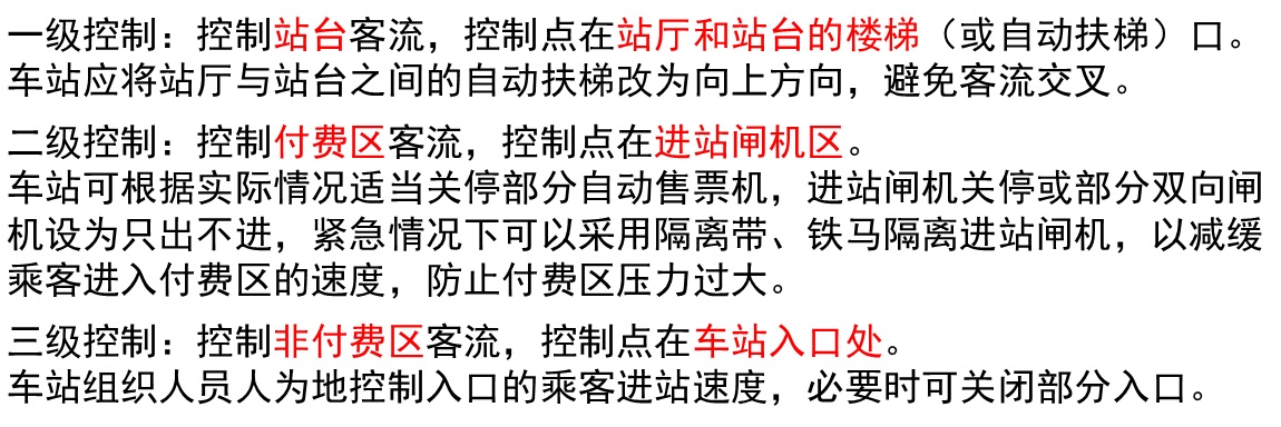 三级控制原则:坚持“由下至上、由内至外”的客流控制原则;坚持点控和线控的原则;坚持集中领导、统一指挥原则
