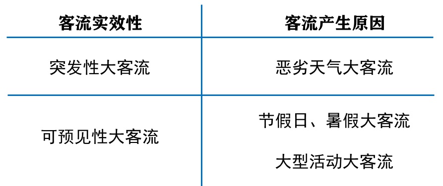 大客流的定义:车站在某一时段集中到达、超过车站正常客运设施或客运组织措施所能承担的客流量时的客流。
