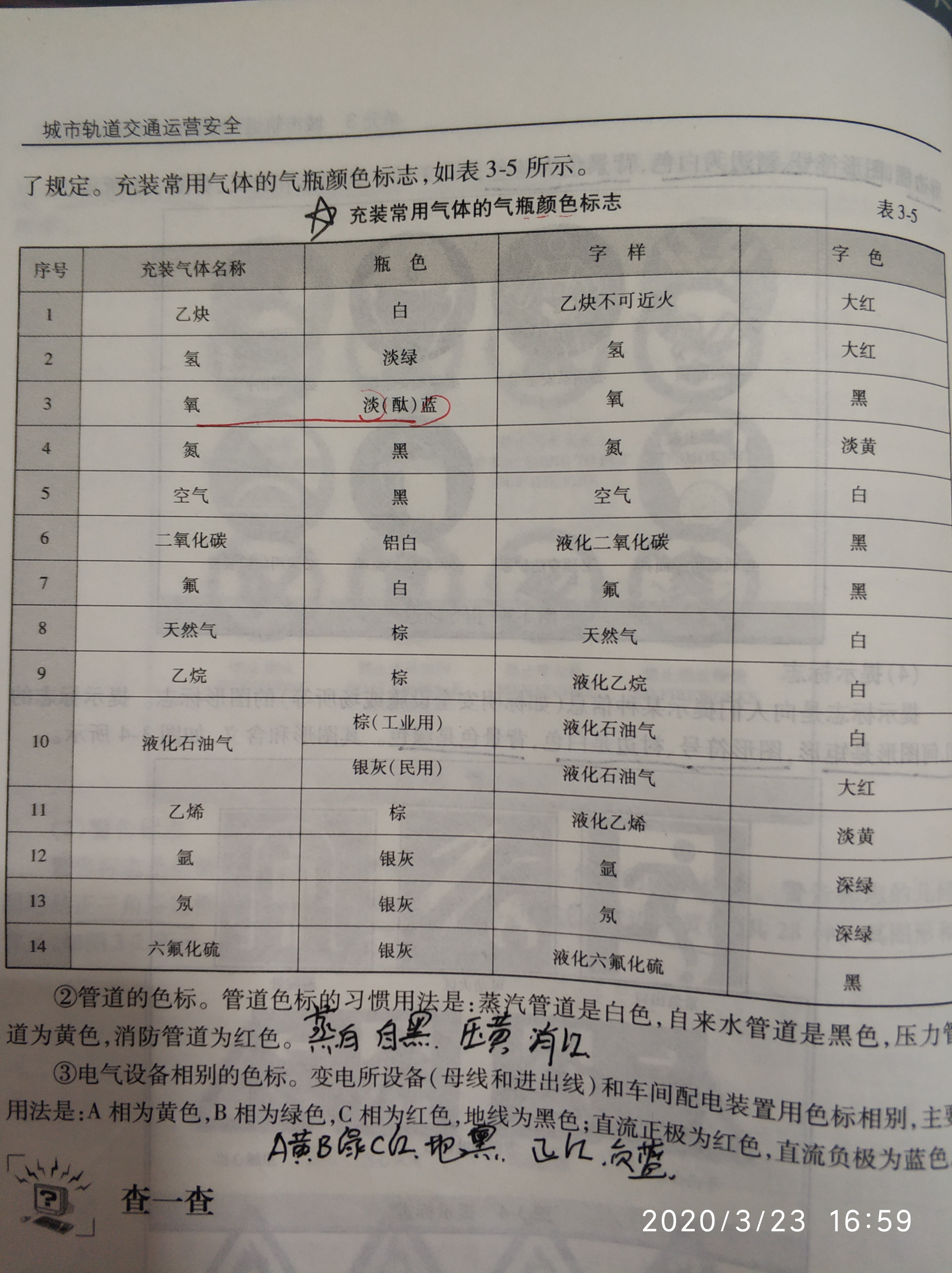 | 1 | 乙炔 | 白 | 乙炔不可近火 | 大红 |