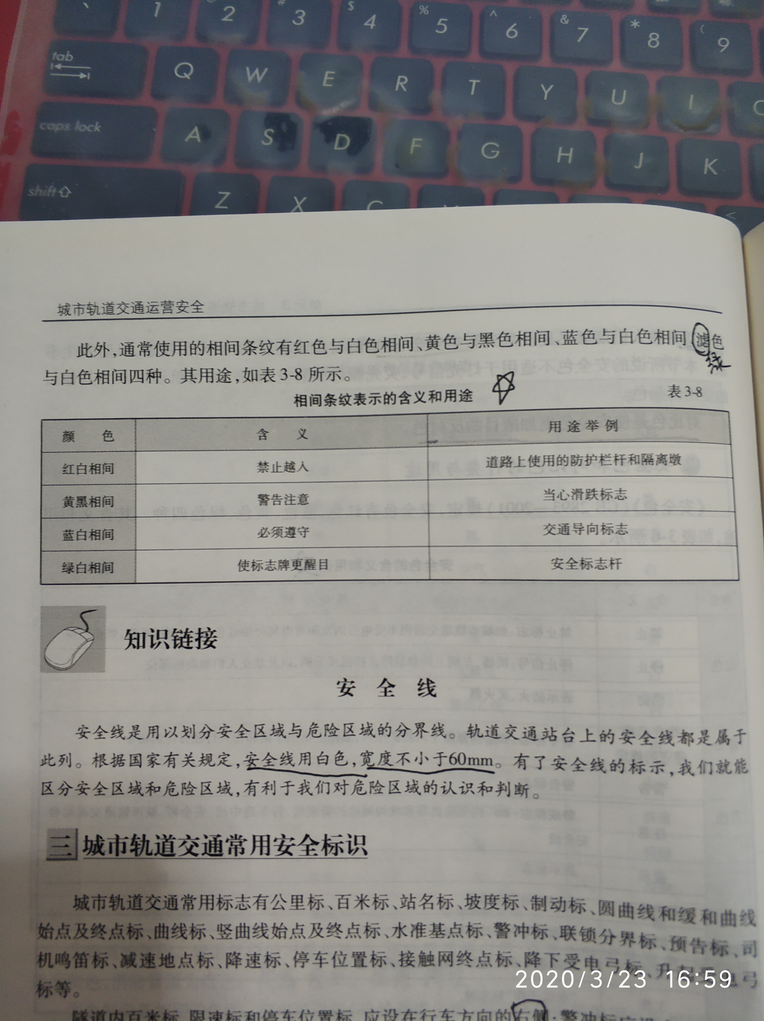 警戒标志:行车道中线、安全帽,城市轨道交通站台安全线 |