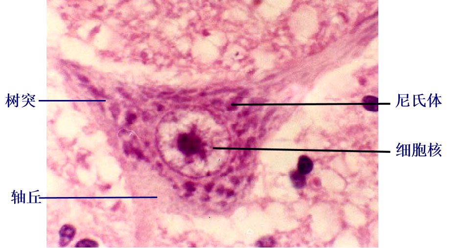 (2)细胞质:光镜下有两个特征性结构:尼氏体和神经原纤维。