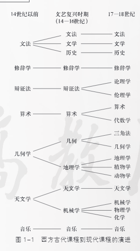 第二,从时代状况看,这是一个科学知识大发展的时期。自然科学、社会科学逐渐从古代的人文学科中独立出来,获得了合法的地位。顺应时代潮流,自然科学知识和实用技术知识在课程体系中逐步受到重视。