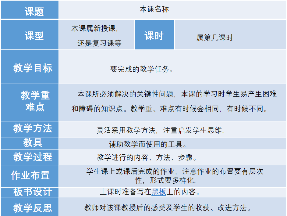 一份标准的教案包括