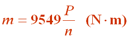 式中:P — 功率,千瓦(kW),n — 转速,转/分(rpm),m-外力偶矩(Nm)。