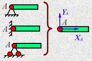 ①固定铰支座:2个约束,1个自由度。如:桥梁下的固定支座,止推滚珠轴承等。