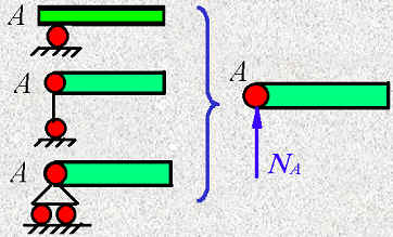 ②可动铰支座:1个约束,2个自由度。如:桥梁下的辊轴支座,滚珠轴承等。