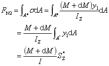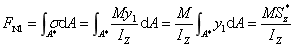 式中:为离中性轴为y的横线以下面积对中性轴之静矩。