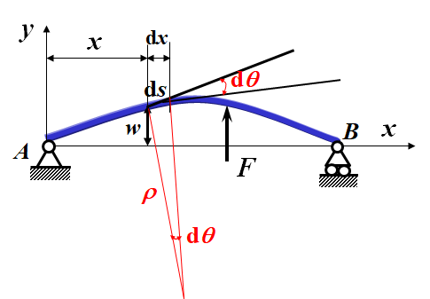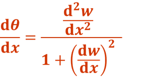 此式即为挠曲线的微分方程,适用于弯曲变形的任意情况,它是非线性的。在小变形的情况下,梁的挠度w一般都远小于跨度,挠曲线w=f(x)是一非常平坦的曲线,转角θ也是一个非常小的角度,于是