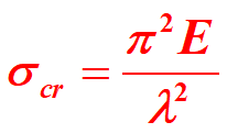 此式称为压杆临界应力的欧拉公式。欧拉公式导出利用了弯曲变形的微分方程,而材料服从胡克定律是微分方程的基础,因此公式的适用范围是临界应力小于等于材料的比例极限。