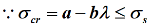 求出与比例极限对应的柔度λ1,公式的适用范围可用下式表示。