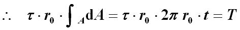 上式为薄壁圆筒受扭时横截面上切应力的计算公式,式中A0为平均半径所作圆的面积。