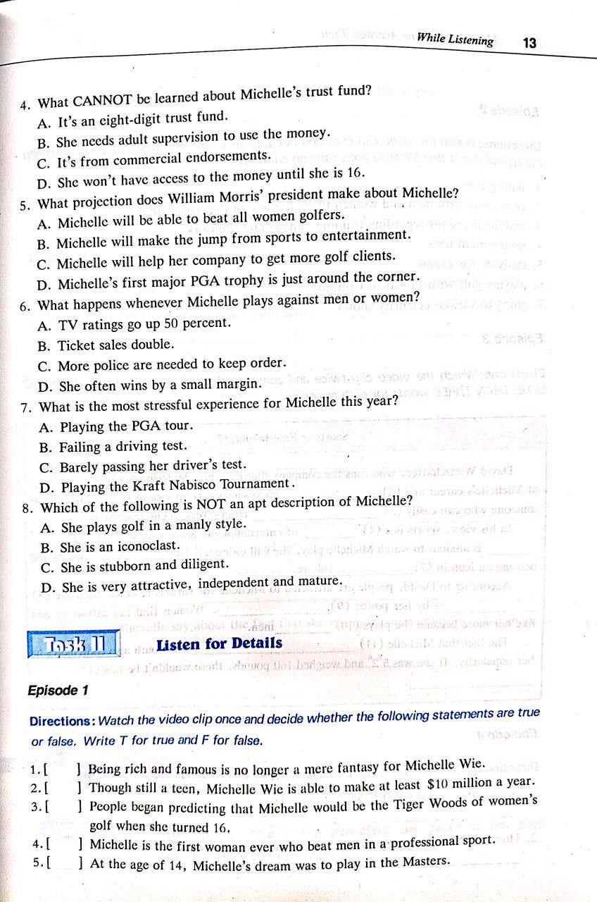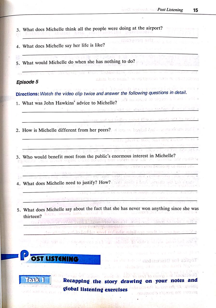 • 5.7 课后任务Post-Listening 1: Listening and Discussion