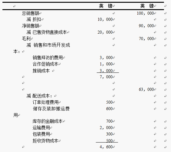 常规核算体系常常很难回答这样一个基本的问题:此客户与彼客户相比较,赢利性差别有多大?通常,客户收益都是以毛利润为标准而计算。换句话说,也就是一个周期内客户所产生的净销售收入,减去购买的商品组合中产品的成本。然而,在可以明确知晓单独客户的真实赢利性前,仍有许多费用需要考虑。同理,在确定不同细分市场或配送渠道的收益率时,也有更多的费用需要考虑。